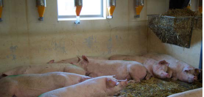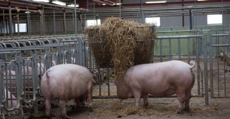 В цехе откорма необходимо выделить зону для занятий и место для рытья, так чтобы у свиней был постоянный доступ к соломе или похожим материалам.