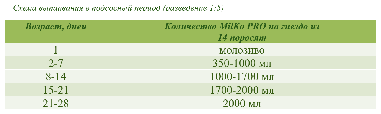 При неожиданном отъёме поросят, падеже свиноматки кратность выпаивания – 10-12 раз в сутки, в остальных случаях – 3-5 раза