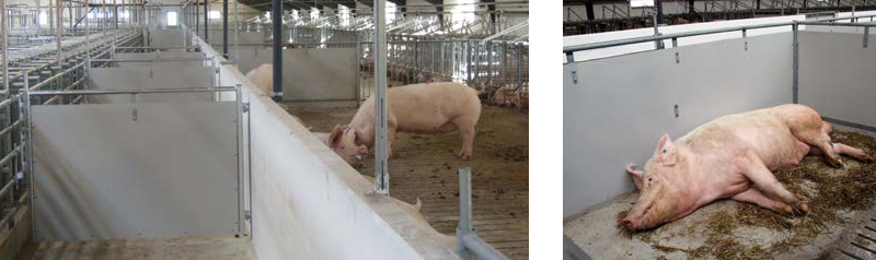 Станок супороса можно оснастить кормовыми станциями для свиноматок, которые подходят для молодых племенных свинок и свиноматок, которые содержаться в динамичных или стабильных группах. Размер станков в цехе с кормовыми станциями разрабатываются с учетом количества свиноматок и молодых племенных свинок. Дизайн станков отлично продуман, и имеет выделенную зону для отдыха и опорожнения.