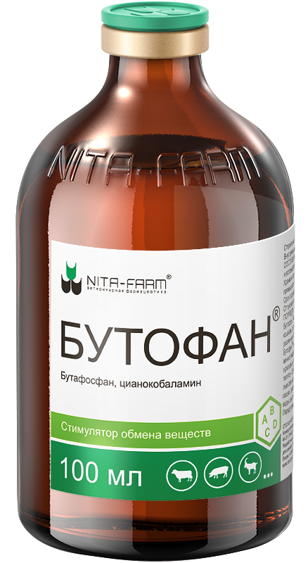 Действующее вещество: бутафосфан – 100 мг, цианокобаламин – 0,05 мг; вспомогательные вещества: метил-4-гидроксибензоат, вода для инъекций.