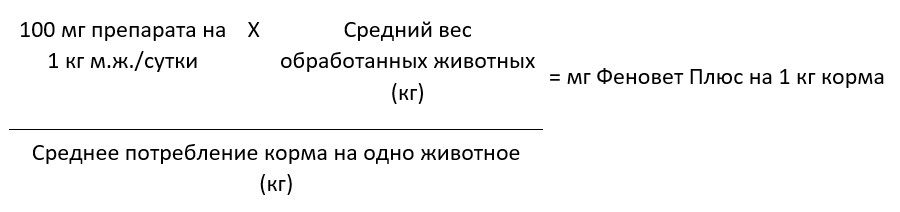 Употребление лечебных кормов зависит от клинического состояния животных. Для получения правильной дозы, концентрация феноксиметилпенициллина калия должна быть скорректирована с учетом ежедневного потребления корма.