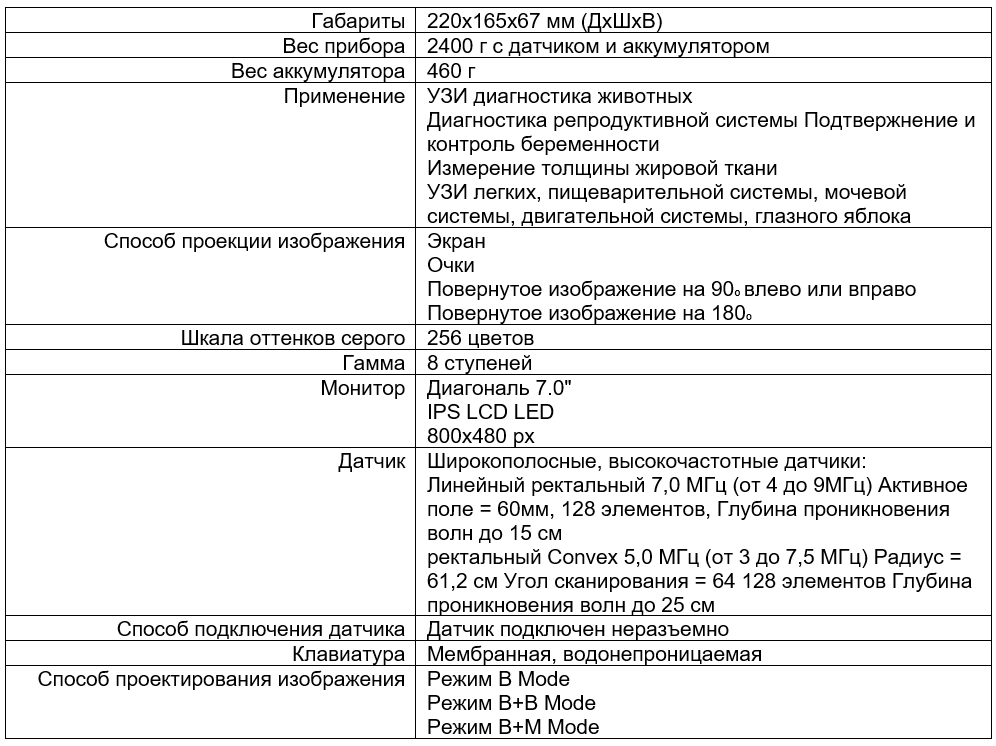 УЗИ сканер состоит из: корпуса, датчика, неразъемно подключенного к корпусу, аккумулятора и зарядного устройства.