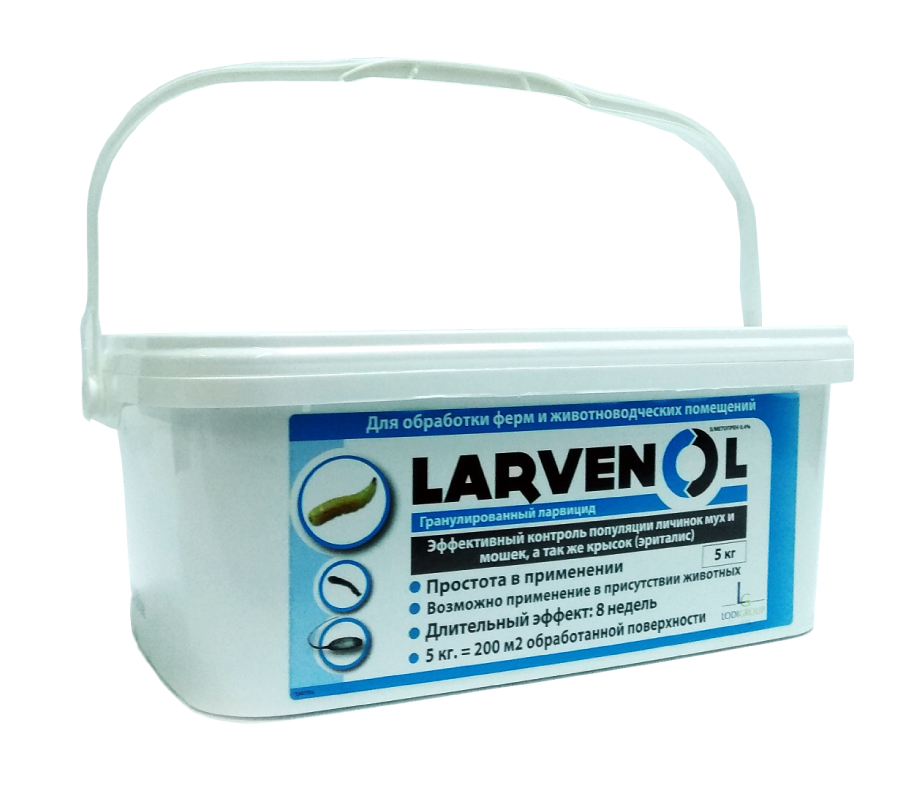Средство обладает эффективностью в отношении преимагинальных (яйца, личинки) стадий развития мух при внесении его в субстрат, где происходит развитие данных стадий. Различные нарушения процесса линьки на протяжении всего цикла развития приводят к отсутствию вылета жизнеспособности поколения.