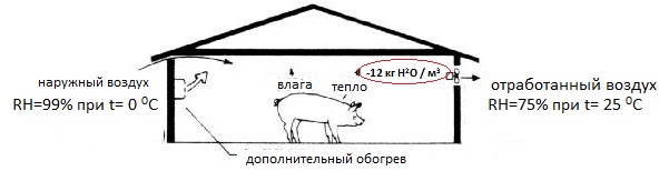 Рис. 3. Схема снижения относительной влажности воздуха в помещении