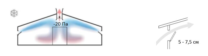 В особо холодный период года, когда расчетная вентиляция значительно снижается необходимо открыть лишь некоторое количество клапанов (20-30 %) на ширину 5-7 сантиметров, а остальные исключить из работы системы. Это обеспечит не только требуемое разрежение при минимальной вытяжке, но и оптимальный воздушный поток в помещении.