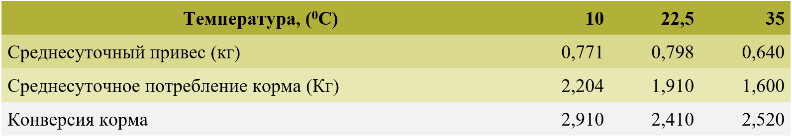 Таблица 2. Влияние ощутимой температуры на продуктивность свиней*