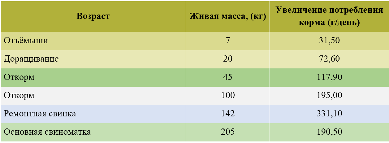 Свиньи разного возраста и живой массы имеют различные диапазоны ТЗК. Более молодые животные тяжело переносят колебания температуры, но по мере их взросления ТЗК расширяется, в результате чего они приобретают способность переносить гораздо более широкий диапазон температур без замедления темпа роста или увеличения конверсии корма (табл. 1).