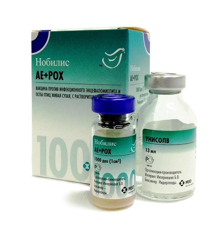 В одной дозе вакцины содержатся действующие вещества: живой вирус инфекционного энцефаломиелита птиц (штамм «Calnek 1143») — нe менее 1,8 log10 ЭИД50 и живой вирус оспы птиц (штамм «Gibbs») — нe менее 1,8 log10 ЭИД50; вспомогательные вещества: триптозо-фосфатный бульон, панкреатический гидролизат казеина, декстран 70, сорбитол, сахароза, желатин, калия дигидрофосфат, калия гидрофосфат, и вода для инъекций.Показания к применению: