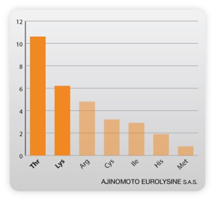 Треонин играет важную роль в выработке антител (Рис.7) и поддержании активности иммунной системы. Значительная часть потребляемого треонина используется кишечником для синтеза эндогенных веществ (факторов неспецифической защиты), в частности, слизи, что очень важно для поддержания кишечного барьера. Экспериментально доказано, что добавление треонина в комбикорм увеличивает сывороточные уровни IgG (основного иммуноглобулина – 80% от всех существующих) у свиноматок, а также увеличивает выработку антител в крови у поросят и уровень иммуноглобулинов G и А в тощей кишке.