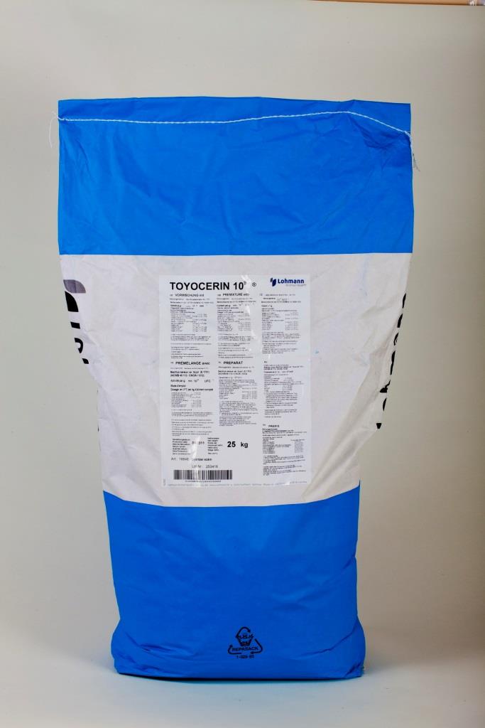 Кормовую добавку вводят в готовые комбикорма на комбикормовых заводах или в кормоцехах хозяйств, используя существующие технологии смешивания. Допустимо введение Тойоцерина 109 в комбикорма с последующей грануляцией и экспандированием, при температуре не выше 85°С.