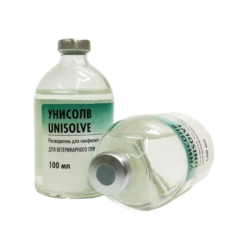 Растворитель для вакцин Унисольв предназначен для растворения живых лиофилизированных вакцин «Порцилис CSF live», «Бовилис IBR маркированная живая», «Бовилис IBR», «Бовилис IBR+P13», «Нобилис АЕ 1143», «Нобилис АЕ+Рох» и других, применяемых инъекционно. Может использоваться для растворения вакцин для птиц, если не требуется применение индикатора для проверки правильности наполнения системы для вакцинации.