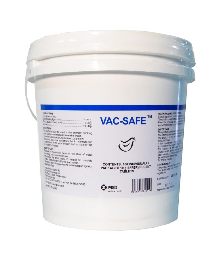 Вак-Сейф (таблетки) нейтрализует избыточный хлор в питьевой воде, защищая эффективность вакцин, лекарственных и пробиотических средств.